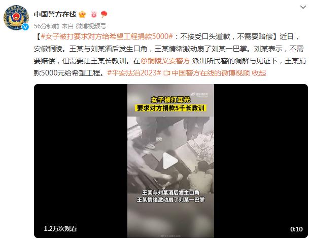 今年1月,一则“离奇”新闻曾引发网友们的热议——在安徽铜陵,王某与刘某在酒后发生口角,王某情绪激动下扇了刘某一巴掌。事后刘某表示不接受口头道歉,不需要赔偿,但要求王某捐款5000元给“希望工程”。
