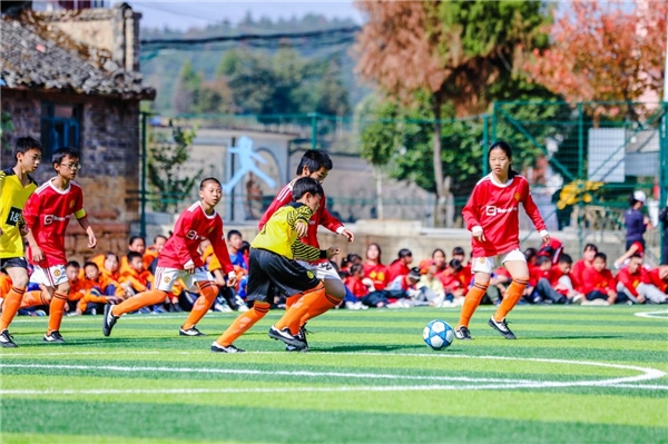 孩子们在安踏运动场上举行足球赛。中国青少年发展基金会供图