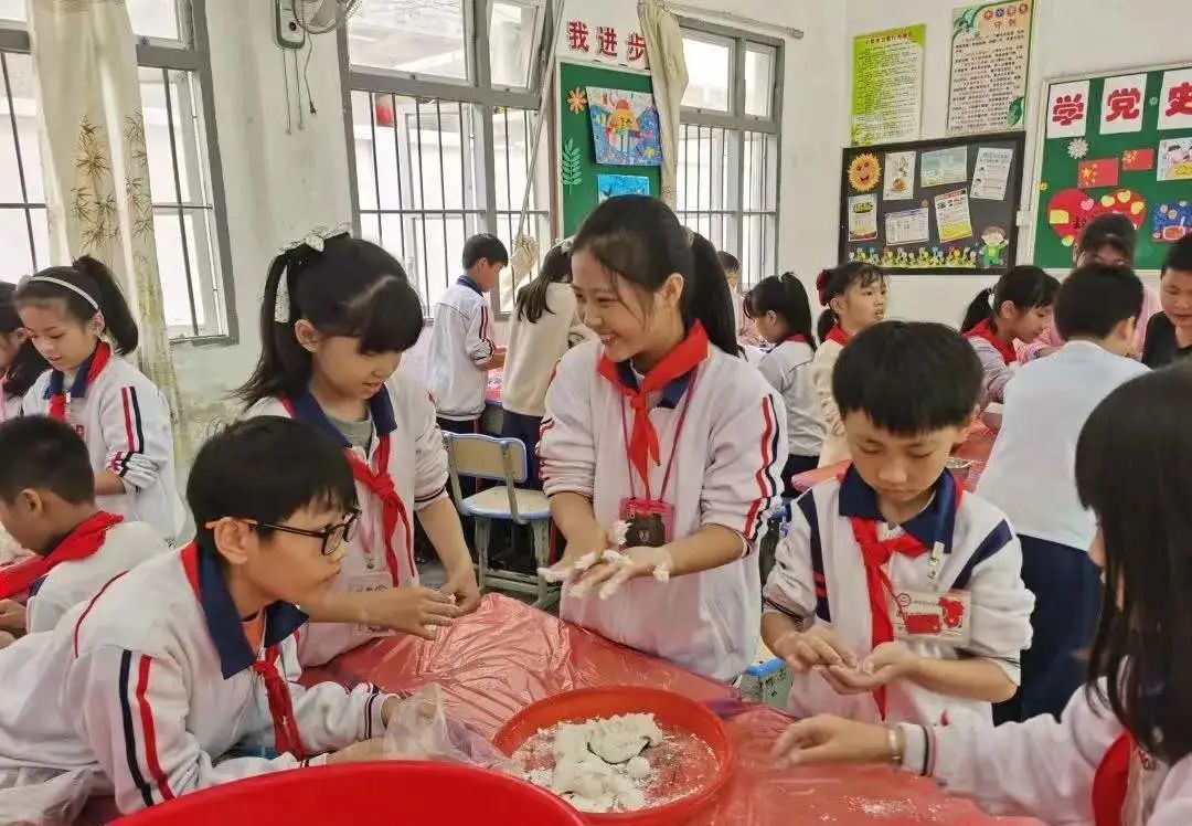 揭阳市普宁市梅林镇南阳小学支教志愿者李晓燕和她的学生们。