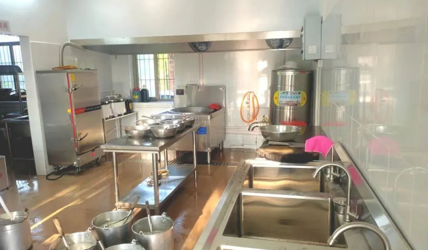(二)专业设备配送:为每间厨房配备全套标准化厨房设备,通常包括蒸饭柜、电磁大锅灶、消毒柜、冰柜(冰箱)、开水器、和面机等,以满足集中供餐需求。